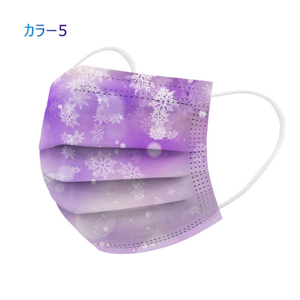 ms-185カラー不織布マスク 大人 雪の結晶 柄入り 50枚入母の日 使い捨て 三層構造 おしゃれ 使い捨て 飛沫 風邪 花粉 ウイルス対策 綺麗