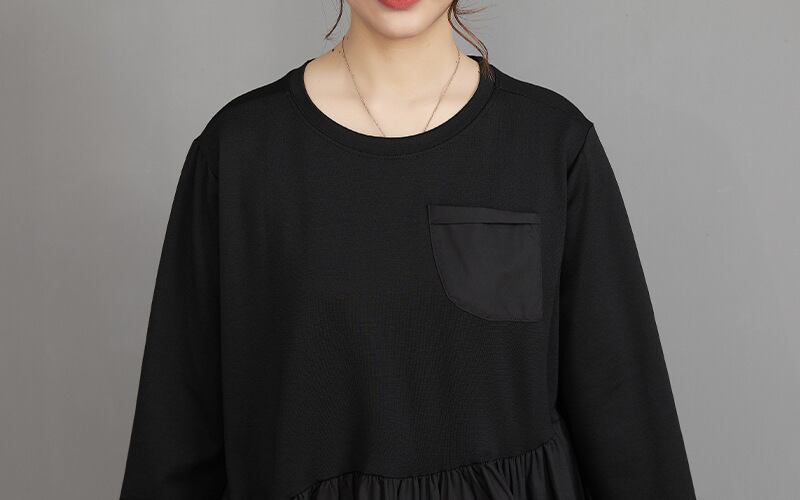 nl-895 ワンピース 長袖 ふわふわしたカジュアル 着痩せ ゆったり ブラック系