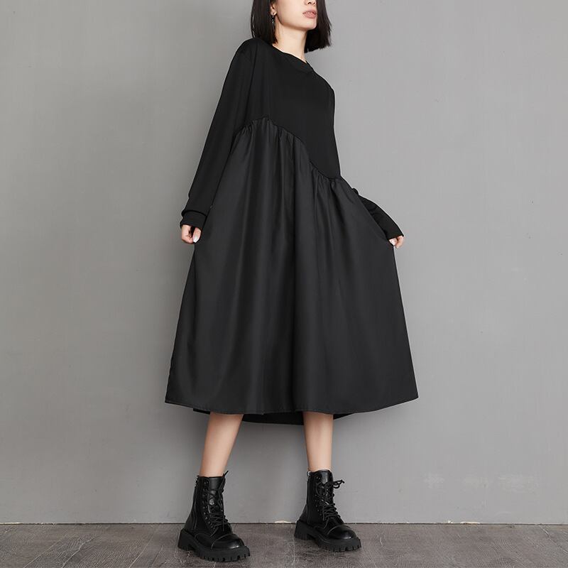 nl-935 ブラック系ワンピース プリーツワンピース マキシワンピース ナチュラル服 エレガント