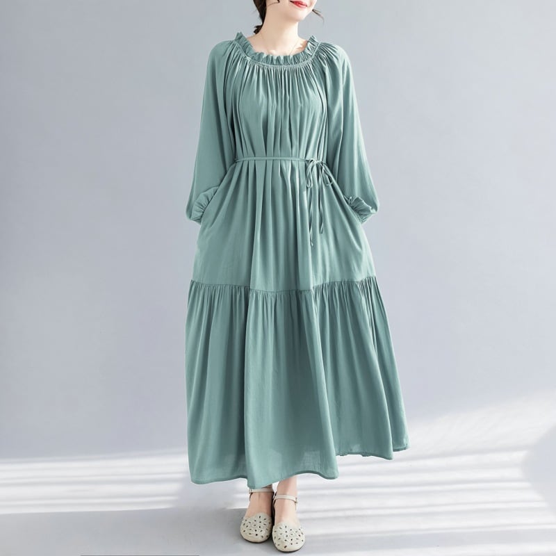 nl-936 ワンピース プリーツワンピース レディース マキシワンピース 無地 森ガール ナチュラル服 エレガント