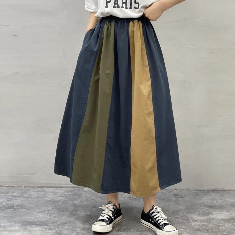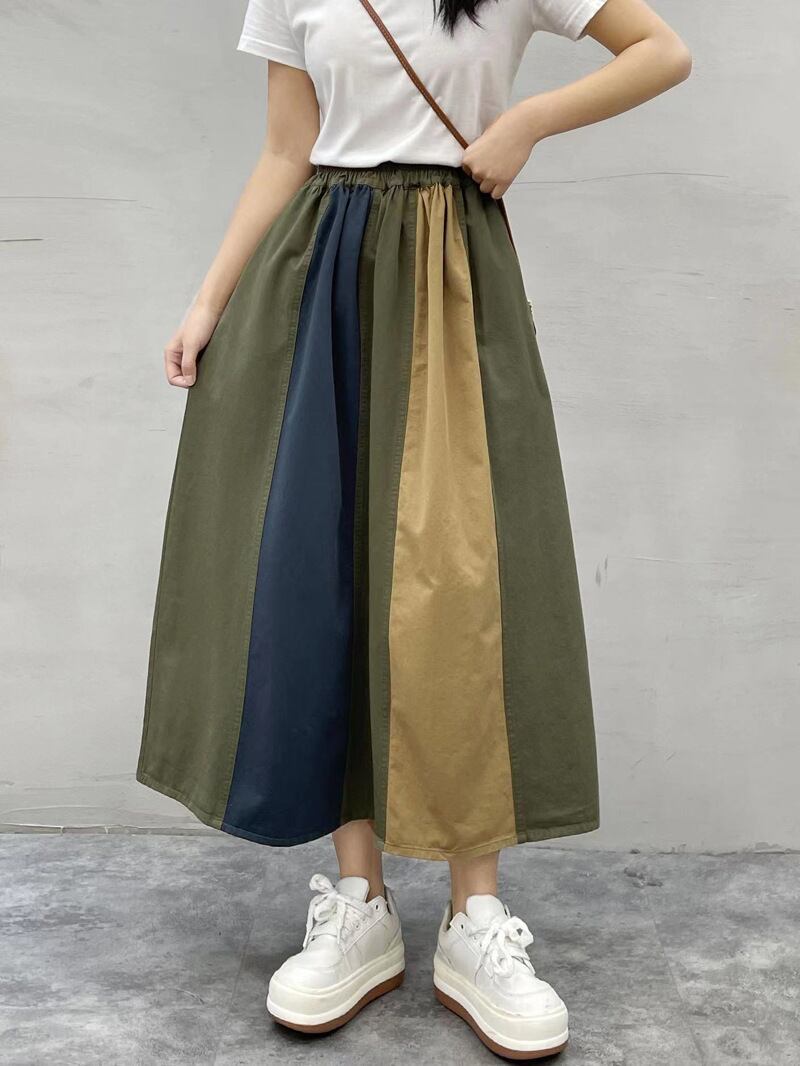 wq-440配色デザインスカート ナチュラル系Aラインスカート