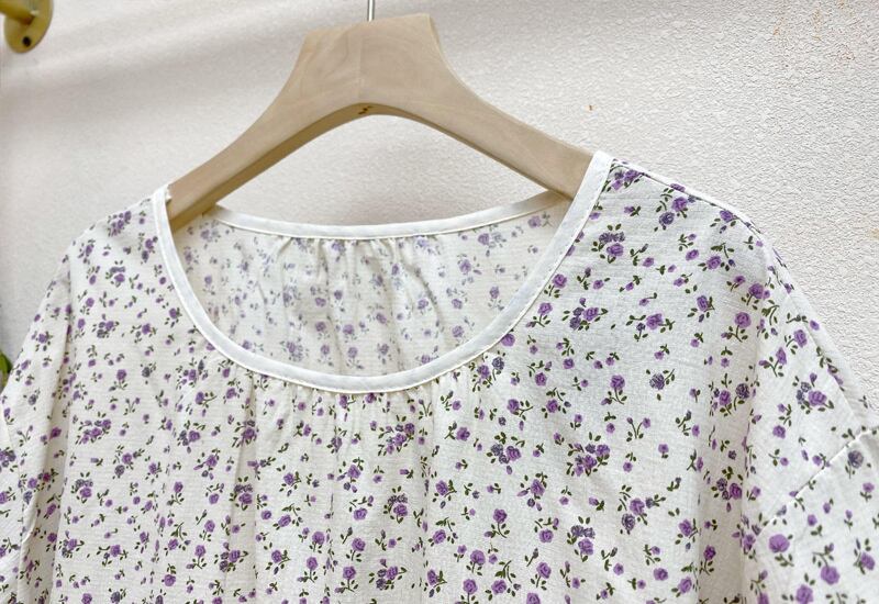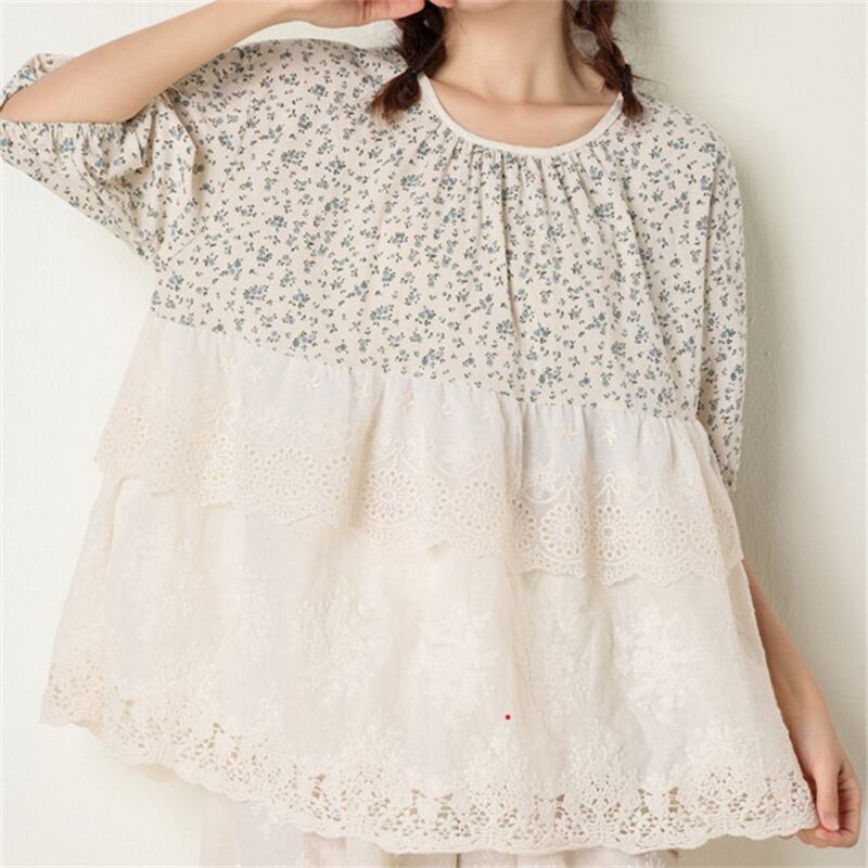 cc-460 花柄 レース切り替え長袖トップスブラウス コットン
