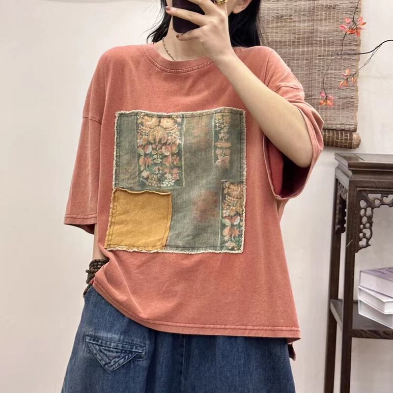 cc-469 花柄 Tシャツトップス ドロップショルダー 半袖 ゆったり レディース トップス