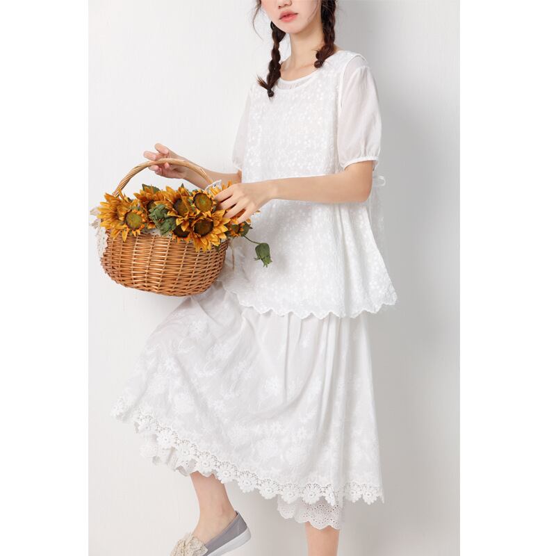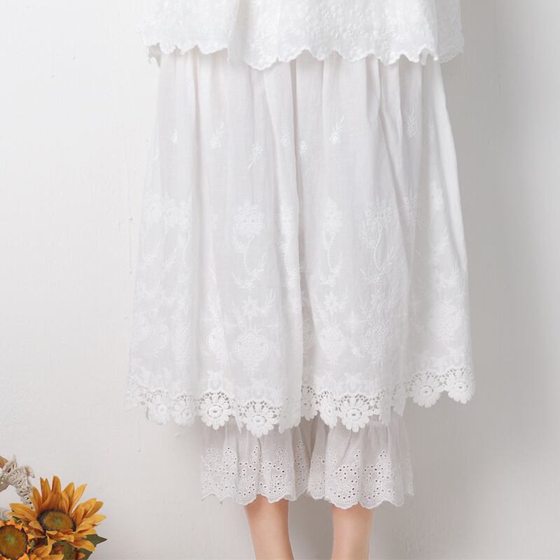 wq-447 パンツスカートボトムリネンス フレアスカート刺繍コットン