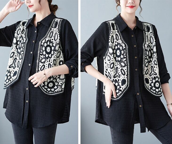 wcs-796刺繍切り替えデザインシャツ トップス ファンション