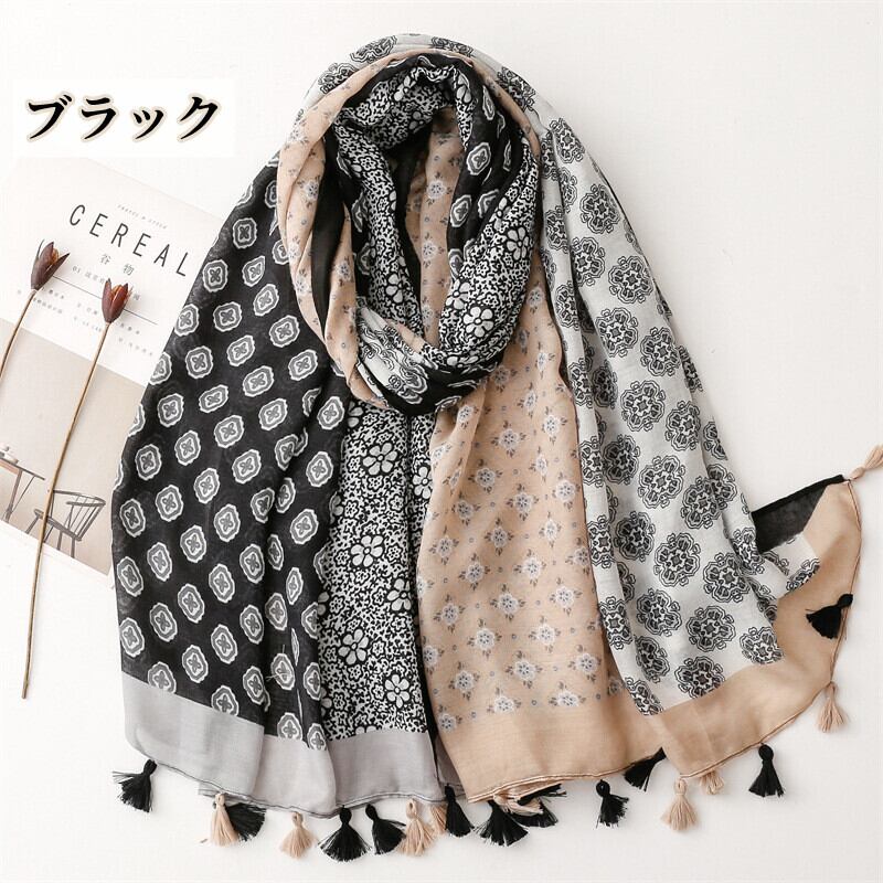 pj-325 レトロフラワープリント柄 UVカット日焼け 大判ストール タオルマフラー リバーシブル 日焼け 冷房対策
