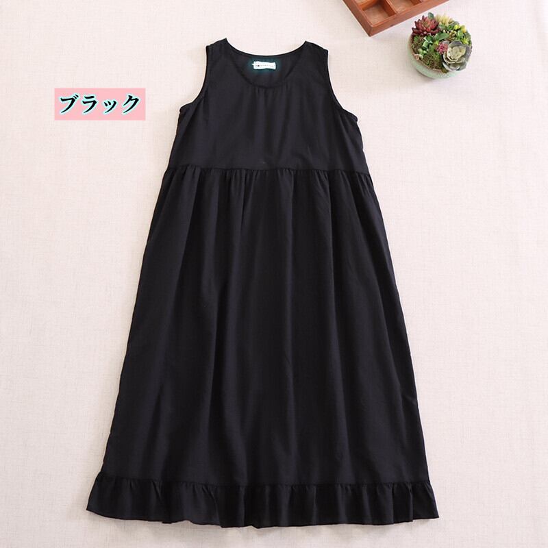 nl-1013 ノースリーブワンピースナチュラル系刺繍ロング丈ワンピースマキシワンピース 体型カバー リネン混 麻綿