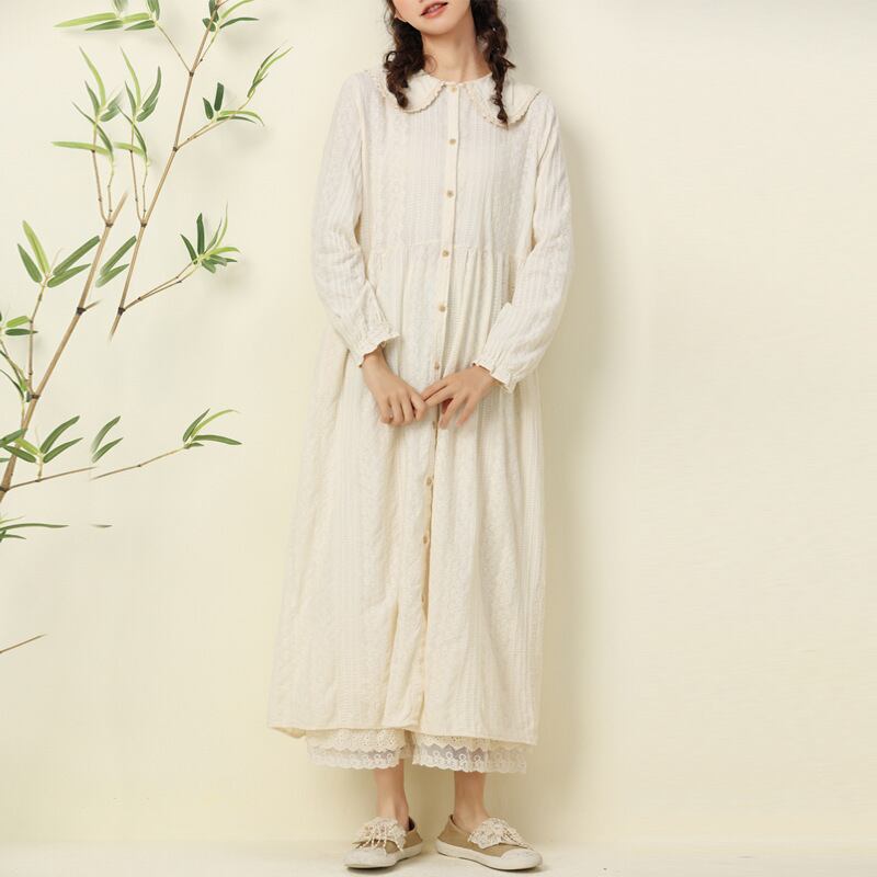 nl-1014 スタンドカラーレース無地マキシ ワンピース 長袖