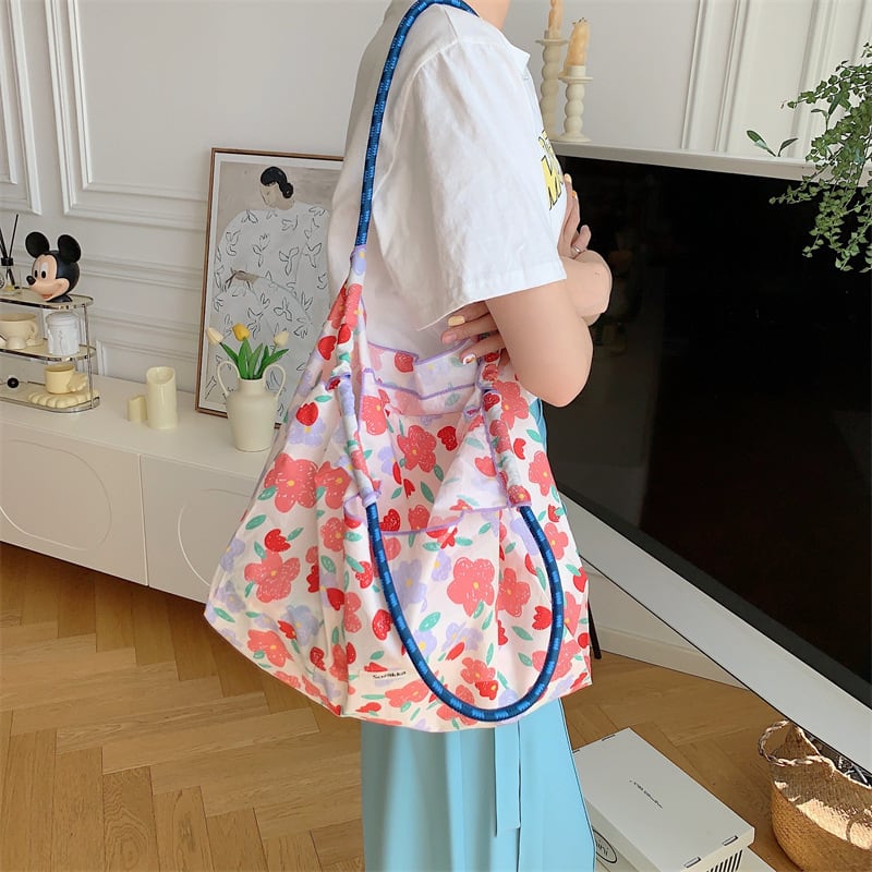 wbag-307 花柄 キャン バスバッグ おしゃれ 大容量