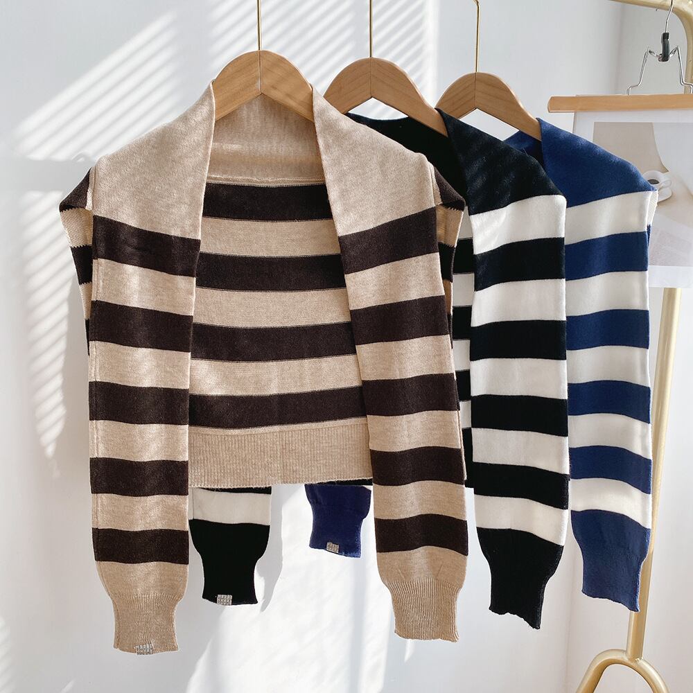 pj-371 ニット ストライプ柄 夏の冷房対策に 薄手のストール