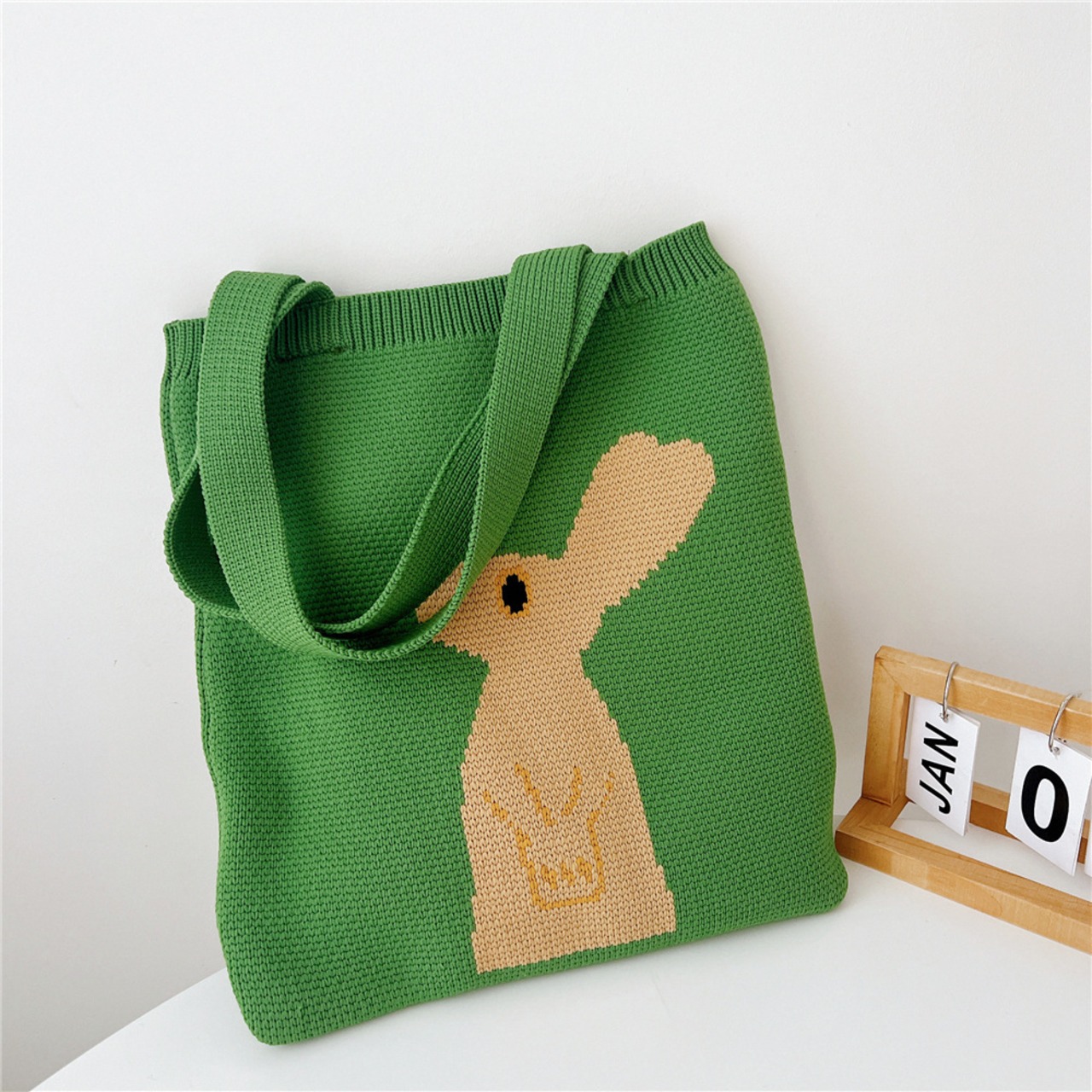 wbag-329 グリーン カジュアル ニットトートショルダーバッグ かわいい