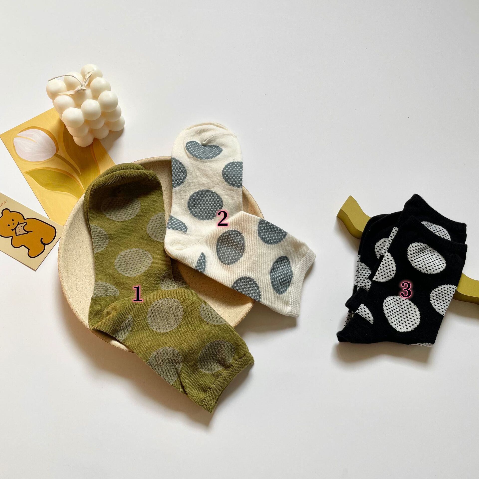 wz-834 靴下 水玉 柄 かわいい くつ下 ソックス クルーソックス 汗吸 ★2023秋新作【5点セット】