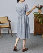 nl-1099 シャツワンピース ストライプ柄 ロング丈 ロングシャツ チュニック ロングワンピース ゆる 体型カバー