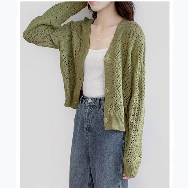wnt-495 薄手 v-ネック ニットトップス 長袖 ボタン ニットカーディガン 【2023秋新作】