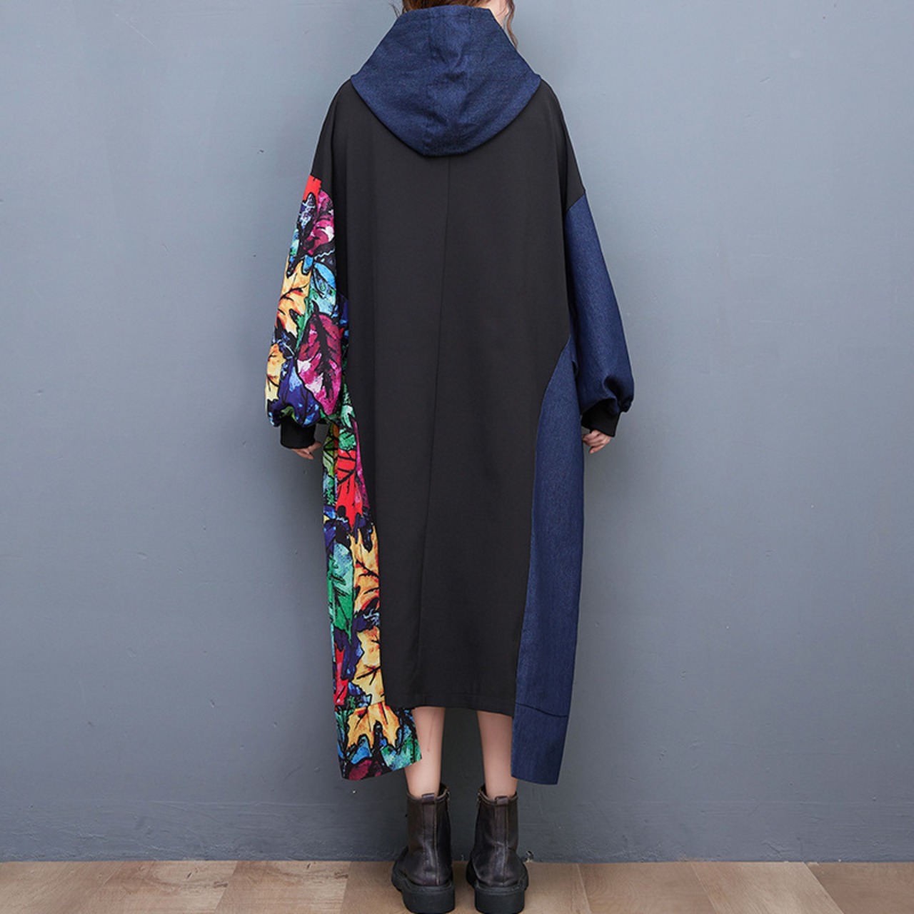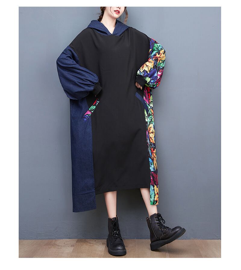 ny-318 花柄 レトロなデザ マキシワンピース 長袖 ゆる 体型カバー 【秋の新作】