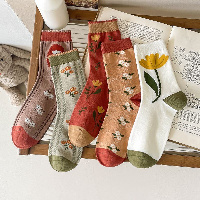 wz-848 花柄かわいい イン ソックス 通気 柔らかい 【3点セット】