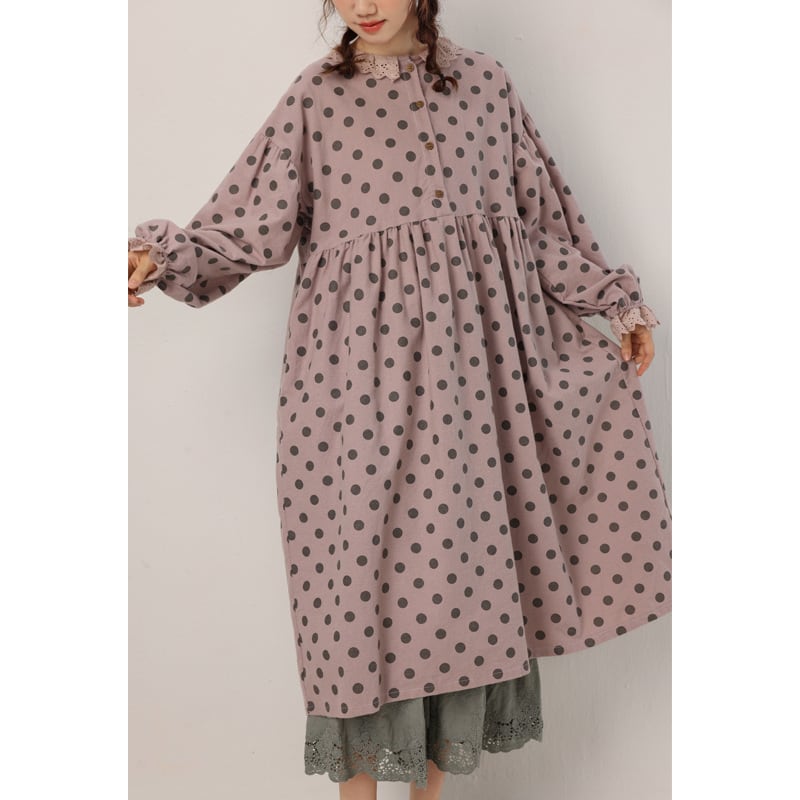 nl-1147 レース 綿素材 水玉柄 マキシ ワンピース