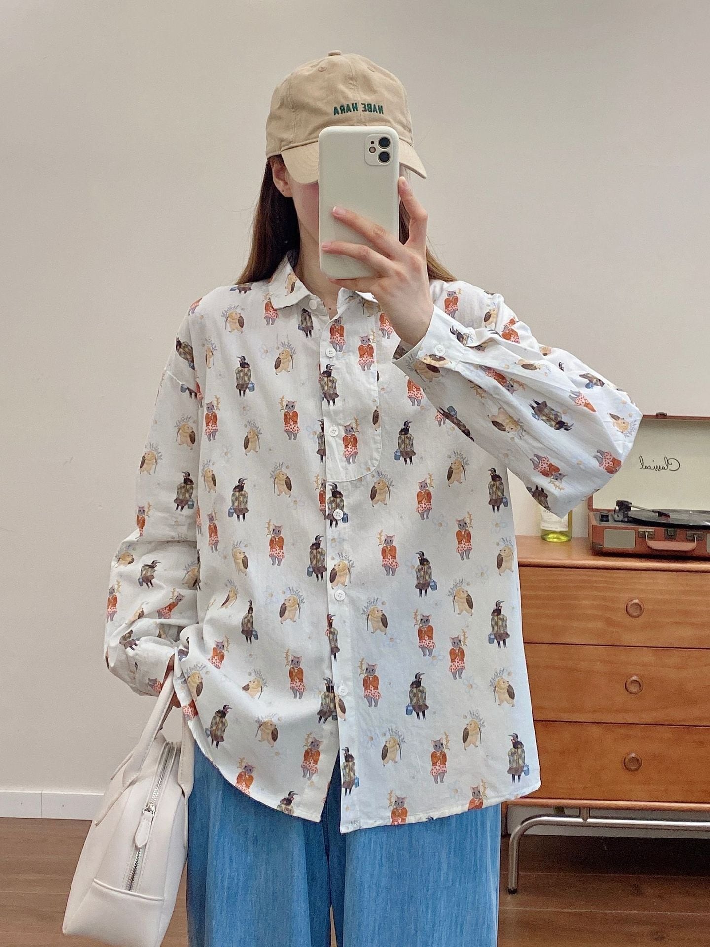 wcs-854 長袖 落書き柄 お洒落な シャツ カジュアルトップス【秋新作】