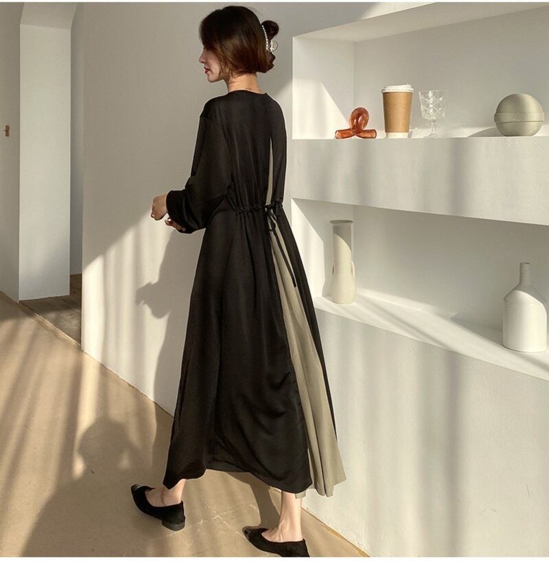 nl-700後ろ切り替えデザイン長袖ワンピース