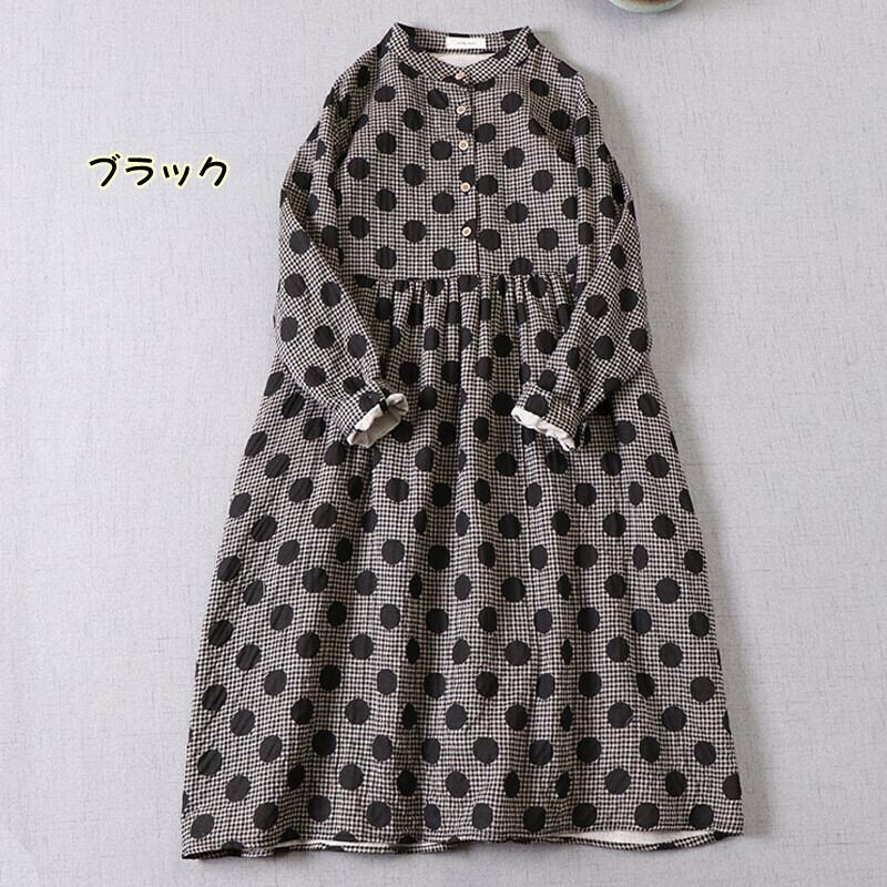 nl-683水玉柄 ワンピース半袖ロング丈ワンピースマキシワンピース aライン ゆる 体型カバー