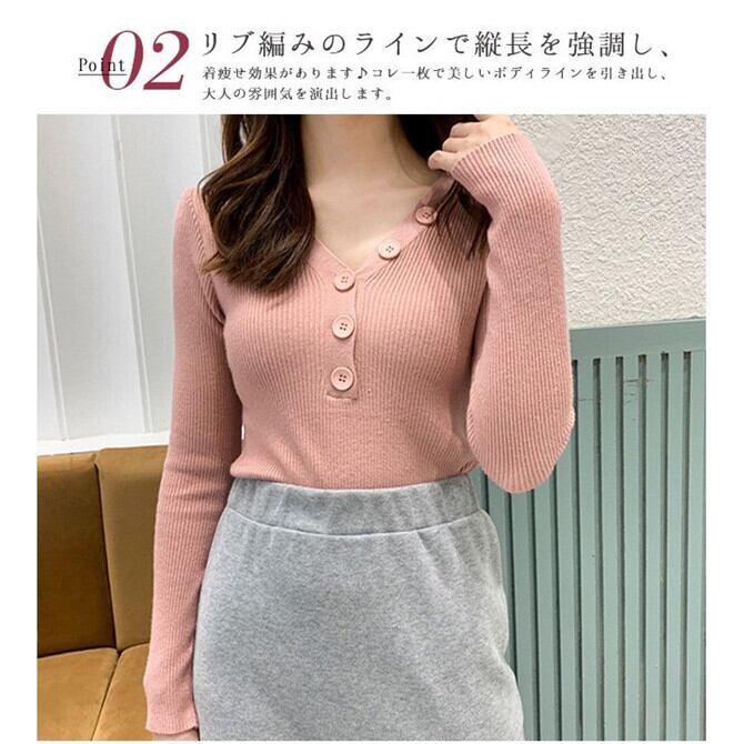 wnt-046 薄手 v-ネック ニットトップス 長袖 ボタン ニットカーディガン