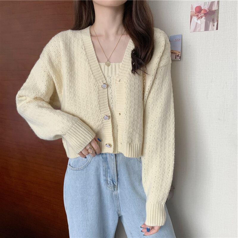 wnt-515 ニットトップス長袖ボタンクルーネックニットカーディガン【2点セット】