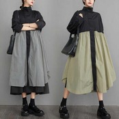 nl-1180 フード付き長袖ロング丈ワンピースコート aライン ゆる 体型カバー