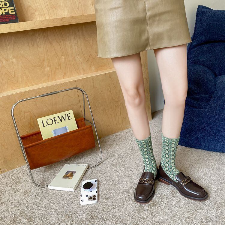 wz-868 花柄か ソックス 靴下 柔らかい綿混 秋冬新作 【3点セット】