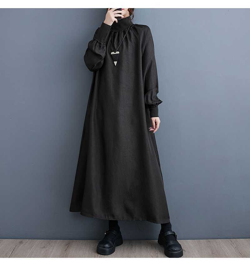 nl-1186 ハイネック長袖ロング丈ワンピースマキシワンピース aライン ゆる 体型カバー