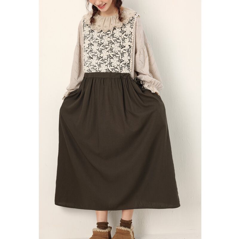 nl-1198 レース刺繍 綿素材 ロング丈ワンピース マキシ ワンピース