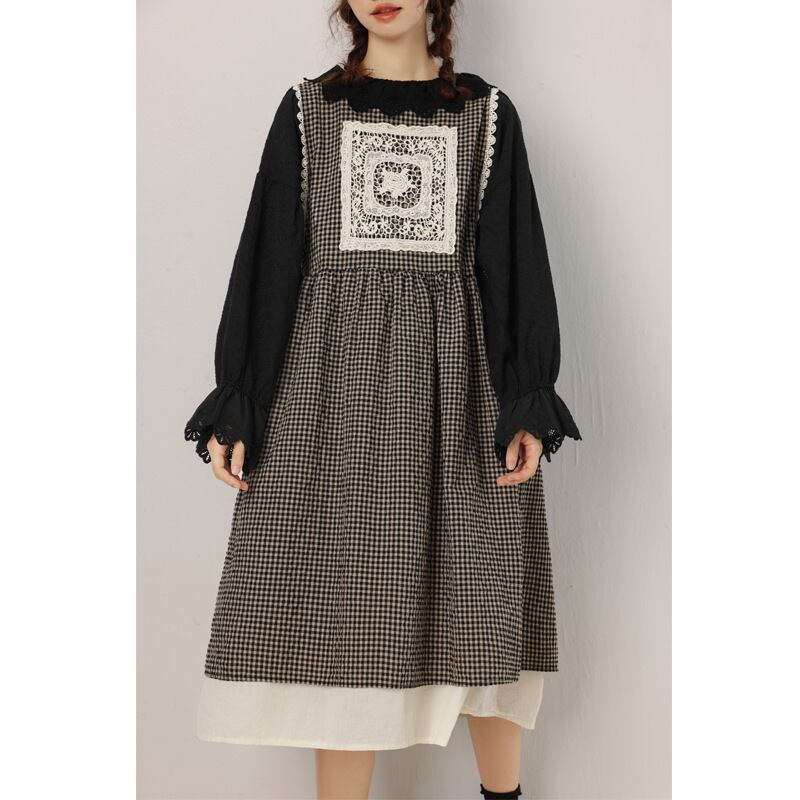 nl-1206 レース刺繍 綿素材 ロング丈ワンピース マキシ ワンピース