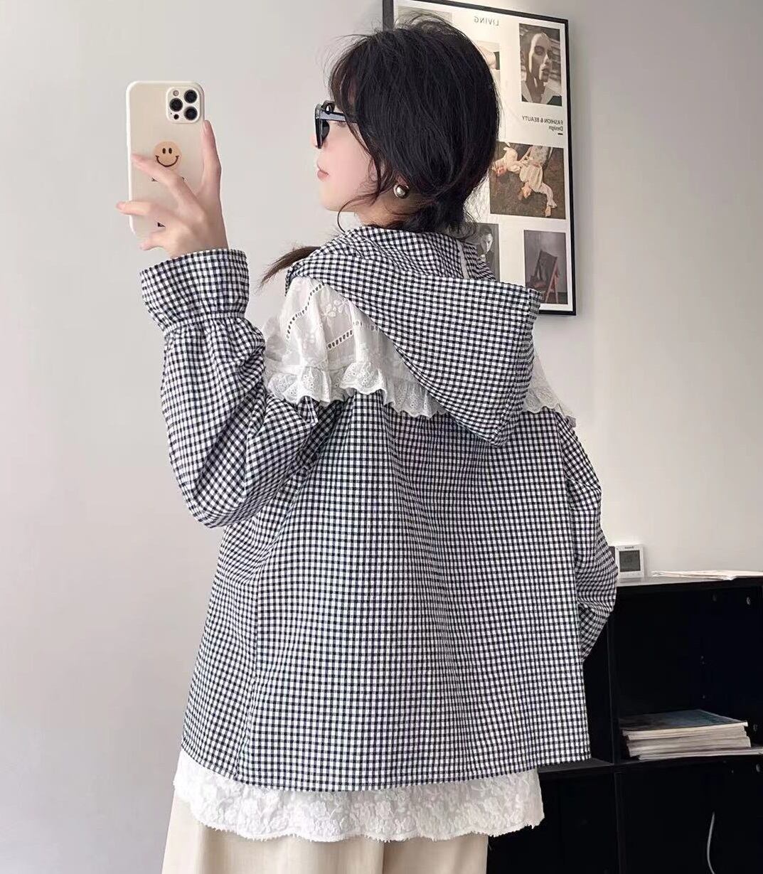 wcs-1018 フード付き レース切り替え刺繍カーディガンアウター