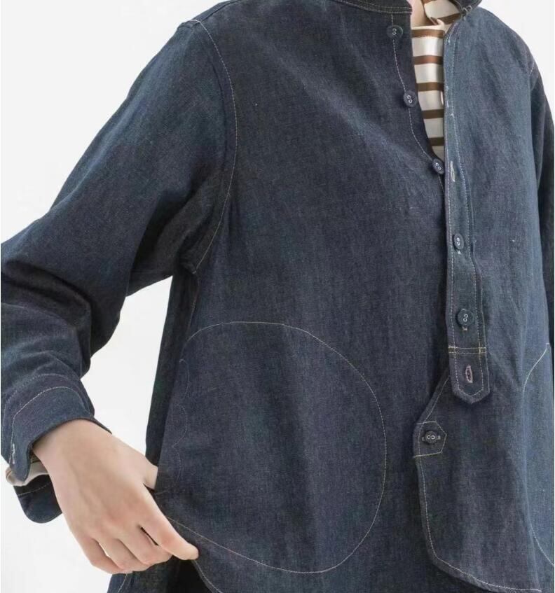 jk-245ナチュラル系ノーカラーデニムジャケットアウター【新作】