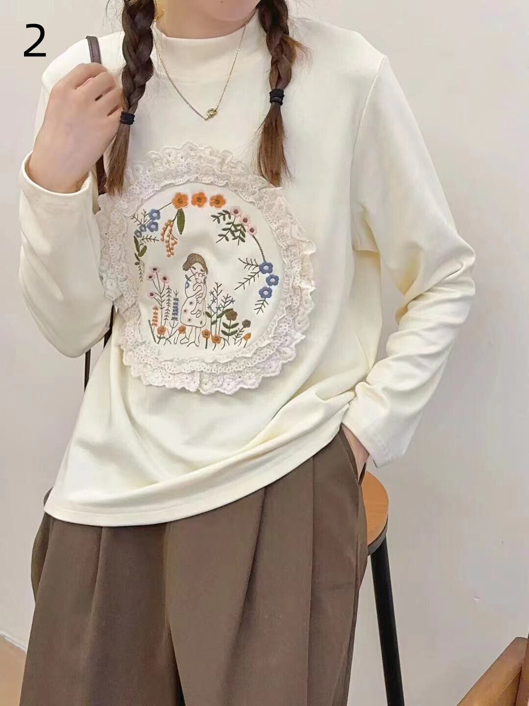 wy-122刺繍長袖 Tシャツトップス 【秋冬新作】