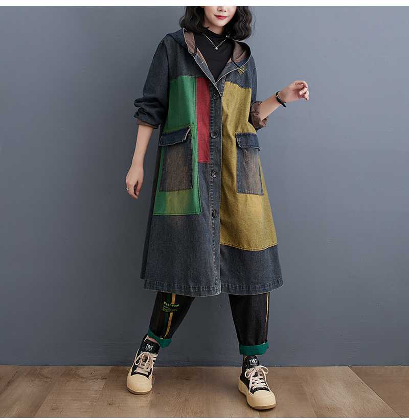 jk-244フード付きデニムカーデワンピースロングコートアウターカーディガン【新作】