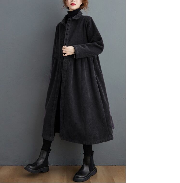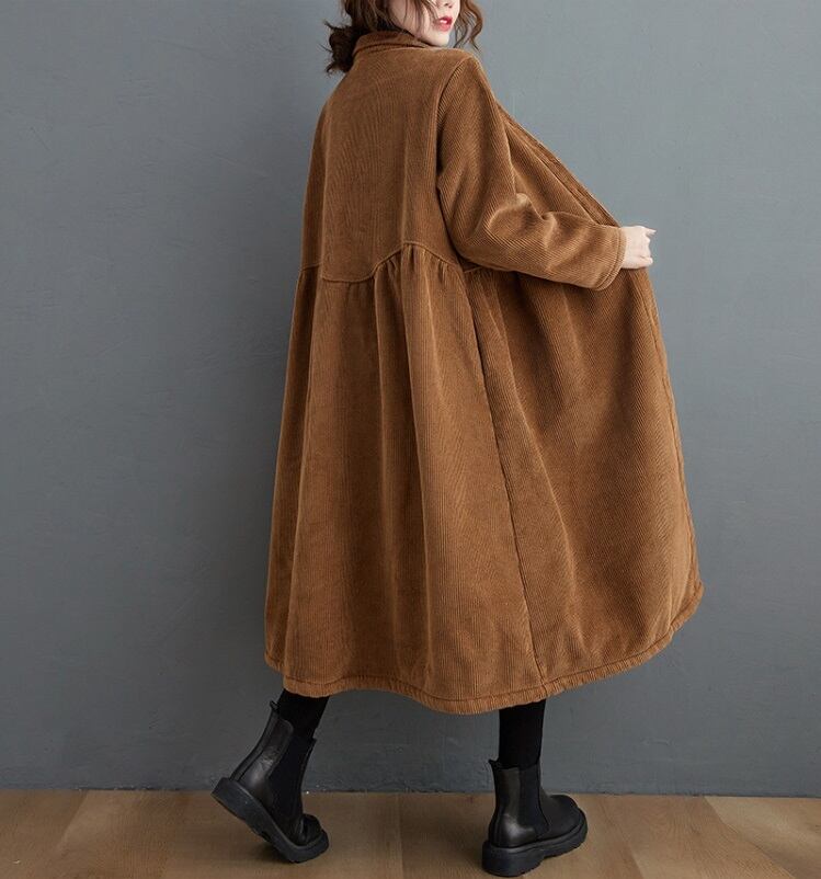 wd-079Aライン裏起毛コーデュロイロングワンピースコートアウター