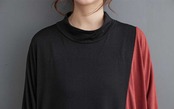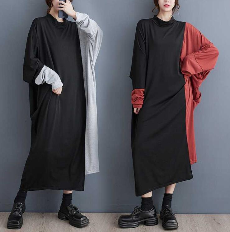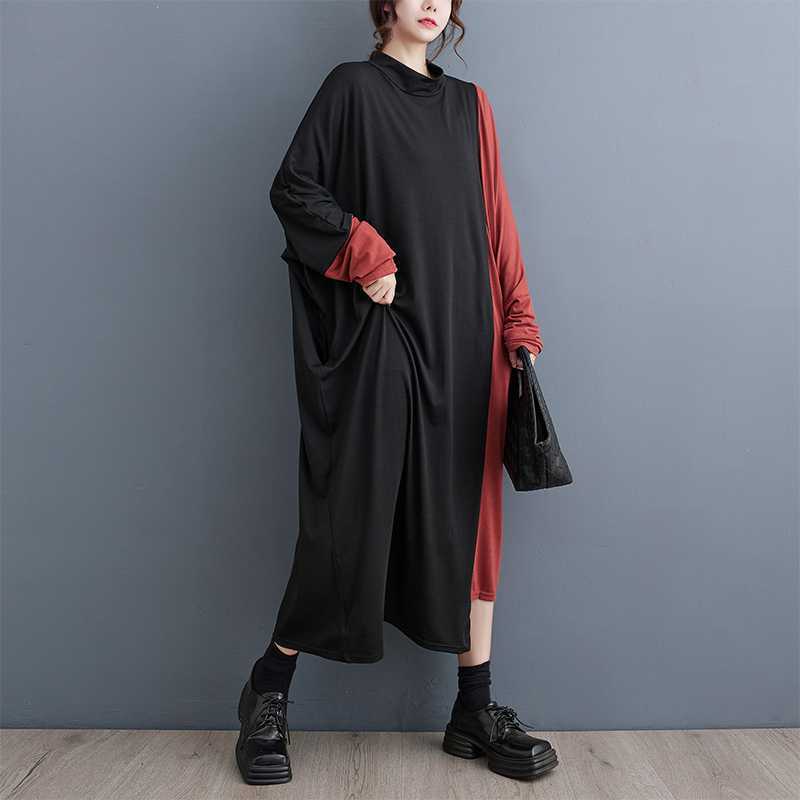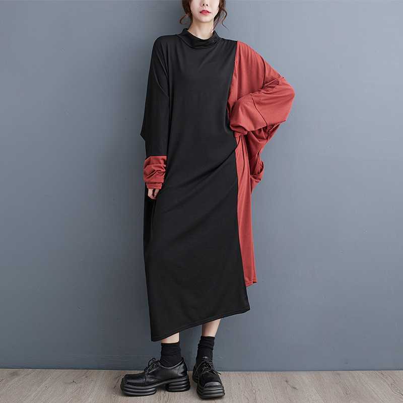 nl-1247 カラー切り替えデザインロングワンピースゆる 体型カバー新作