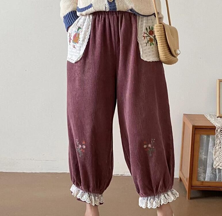 wk-736 刺繍切り替え ワイドパンツジーパン 弾性ウエスト