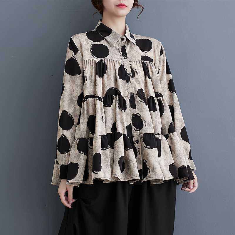 wcs-1046 ドットプリントデザインシャツトップス長袖シャツ 【2024新作】