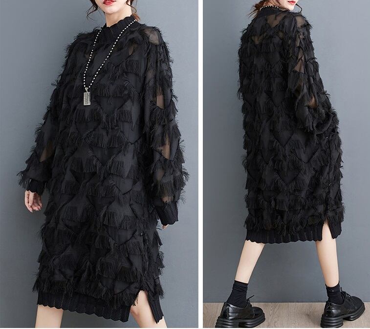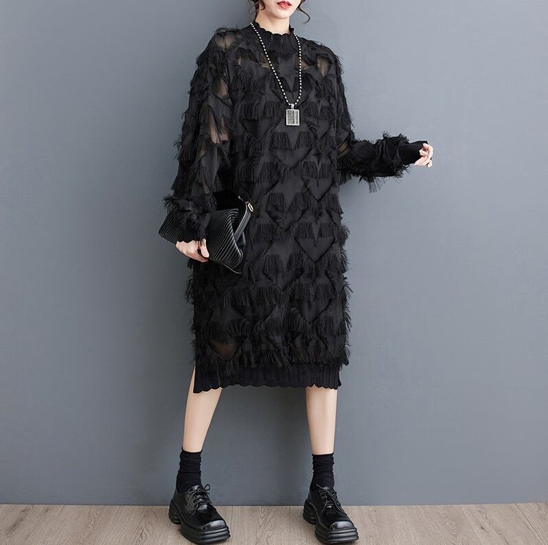 nl-1281 レース不規則ロングワンピースゆる 体型カバー新作【 2024春新作】