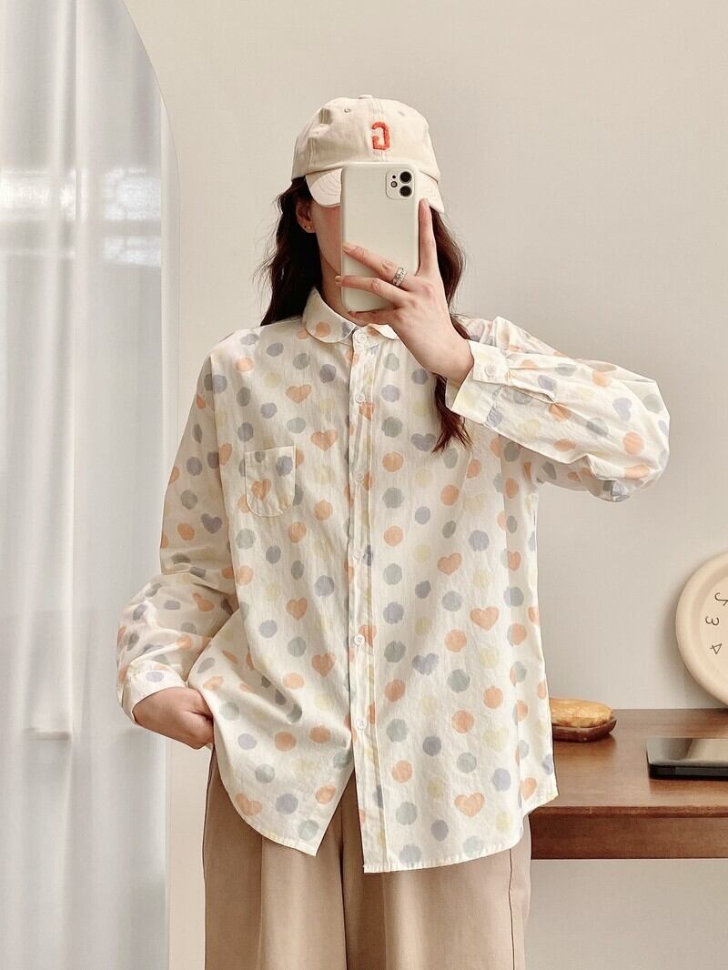 wcs-1068 円柄長袖/ナチュラル系ダブルガーゼカラーコットンシャツ・ブラウス【2024春新作】