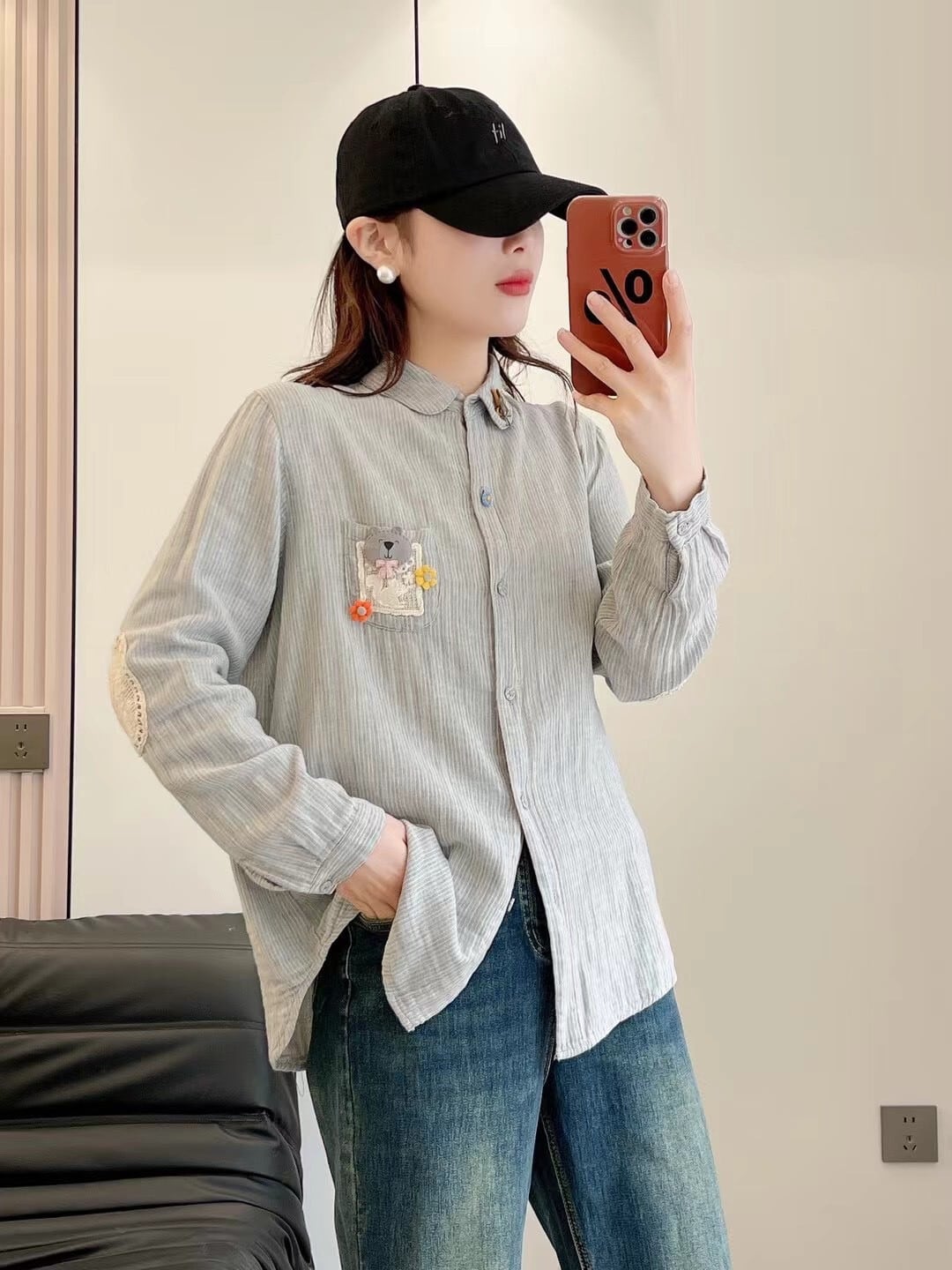 wcs-1070長袖/ナチュラル系ダブルガーゼカラーコットンシャツ・ブラウス【2024春新作】