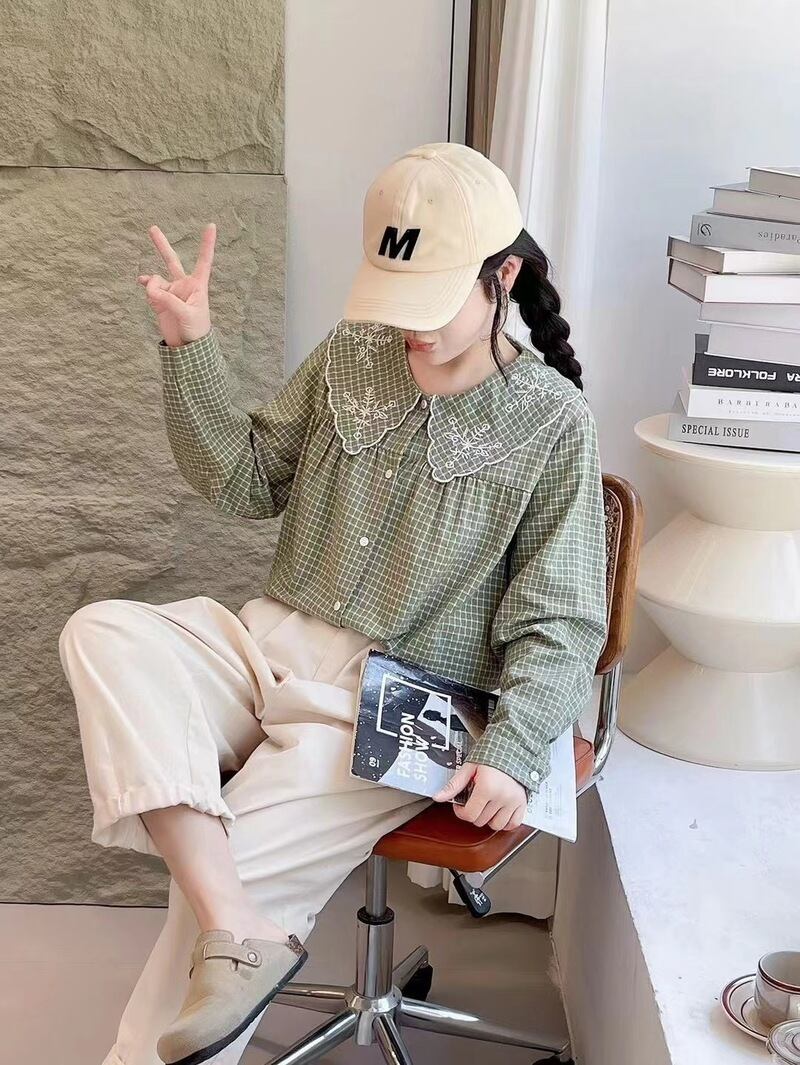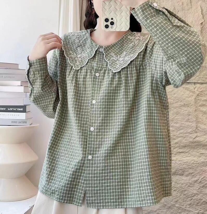 wcs-1073長袖/ナチュラル系ダブルガーゼカラーコットンシャツ・ブラウス【2024春新作】