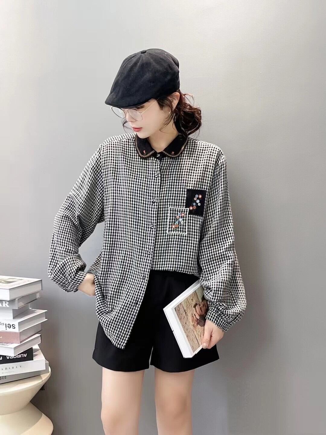 wcs-1075長袖/ナチュラル系ダブルガーゼカラーコットンシャツ・ブラウス【2024春新作】