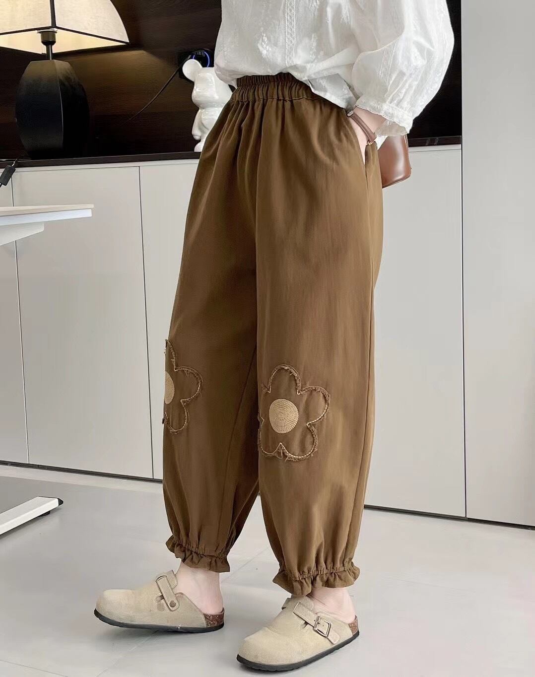 wk-759 刺繍切り替え ワイドパンツジーパン 弾性ウエスト【2024春新作】