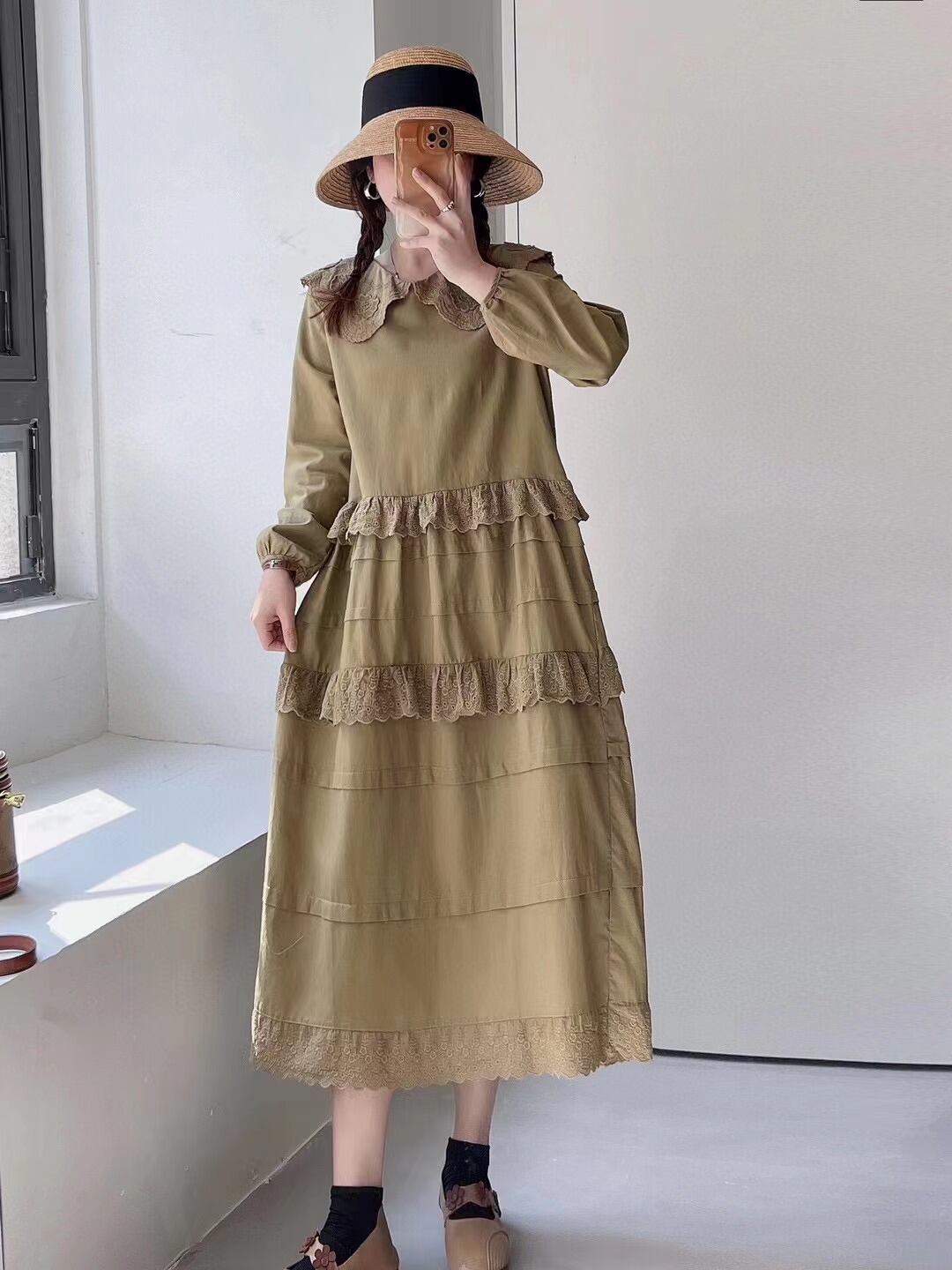 nl-1296 レース綿素材花柄 ロング丈ワンピース マキシ ワンピース【2024春新作】