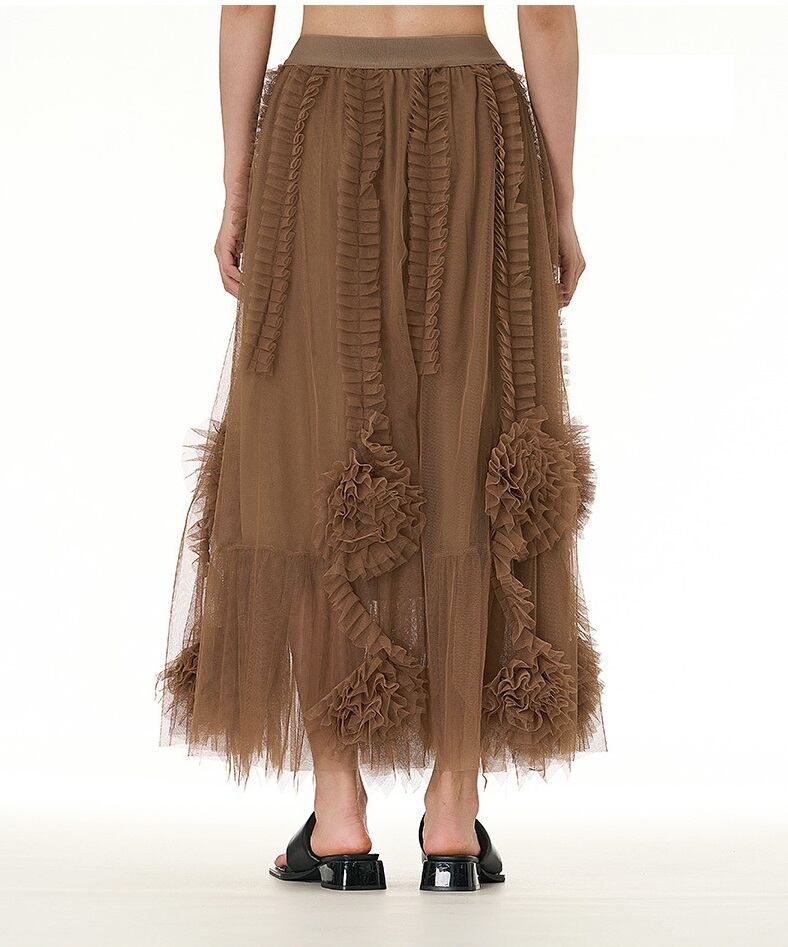 wq-552チュールスカート ロング マキシスカート ウエストゴム フレアスカート