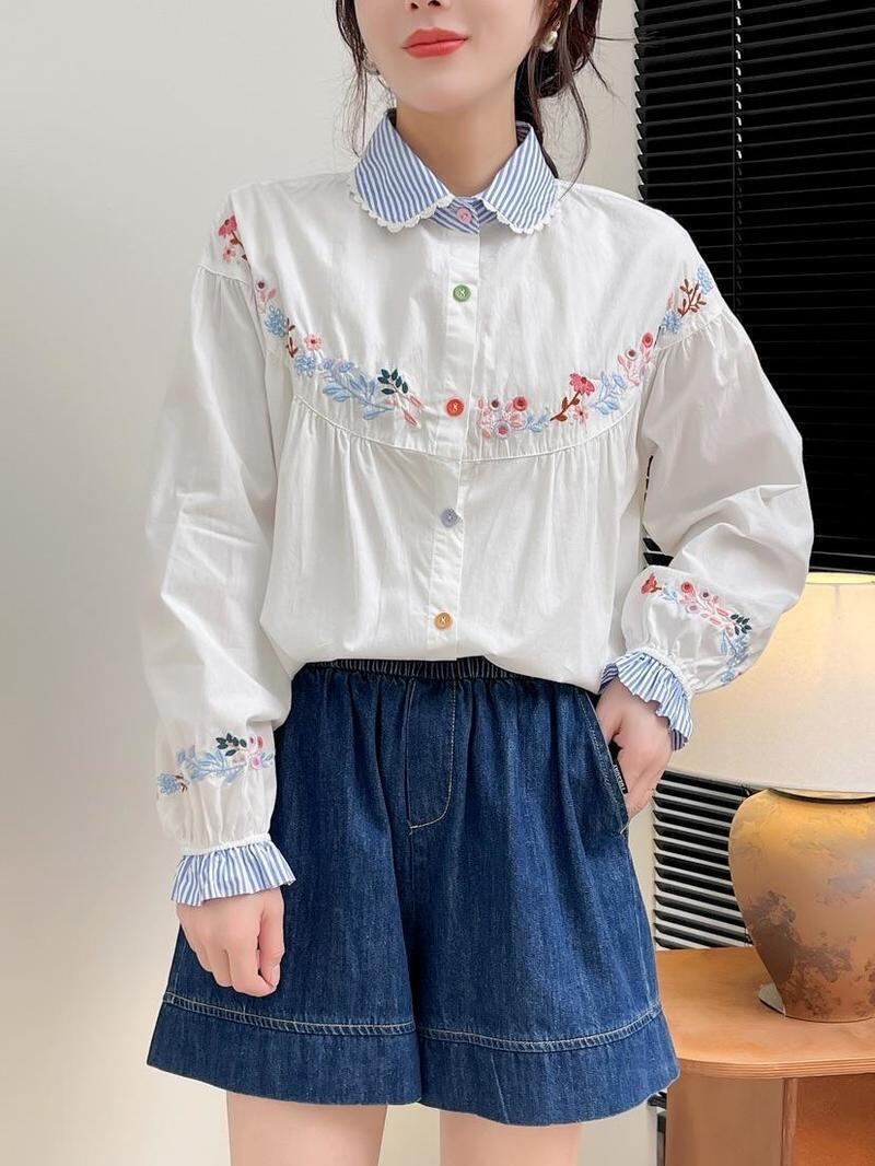 wcs-1138レース切り替え長袖トップスシャツ・ブラウス【2024春新作】