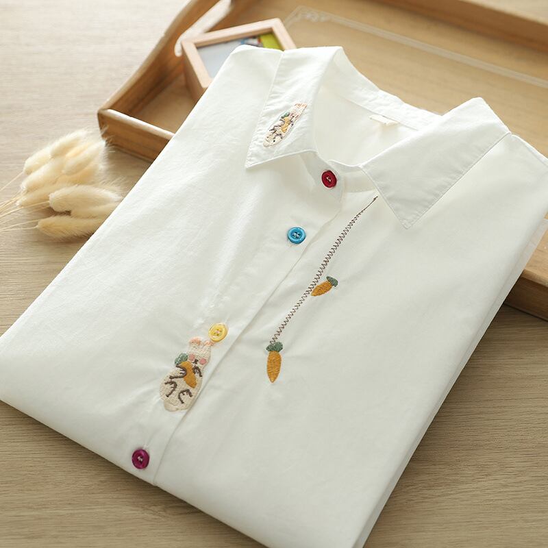 wcs-1125 長袖刺繡デザイン 兎柄コットンシャツ・ブラウス【2024春新作】