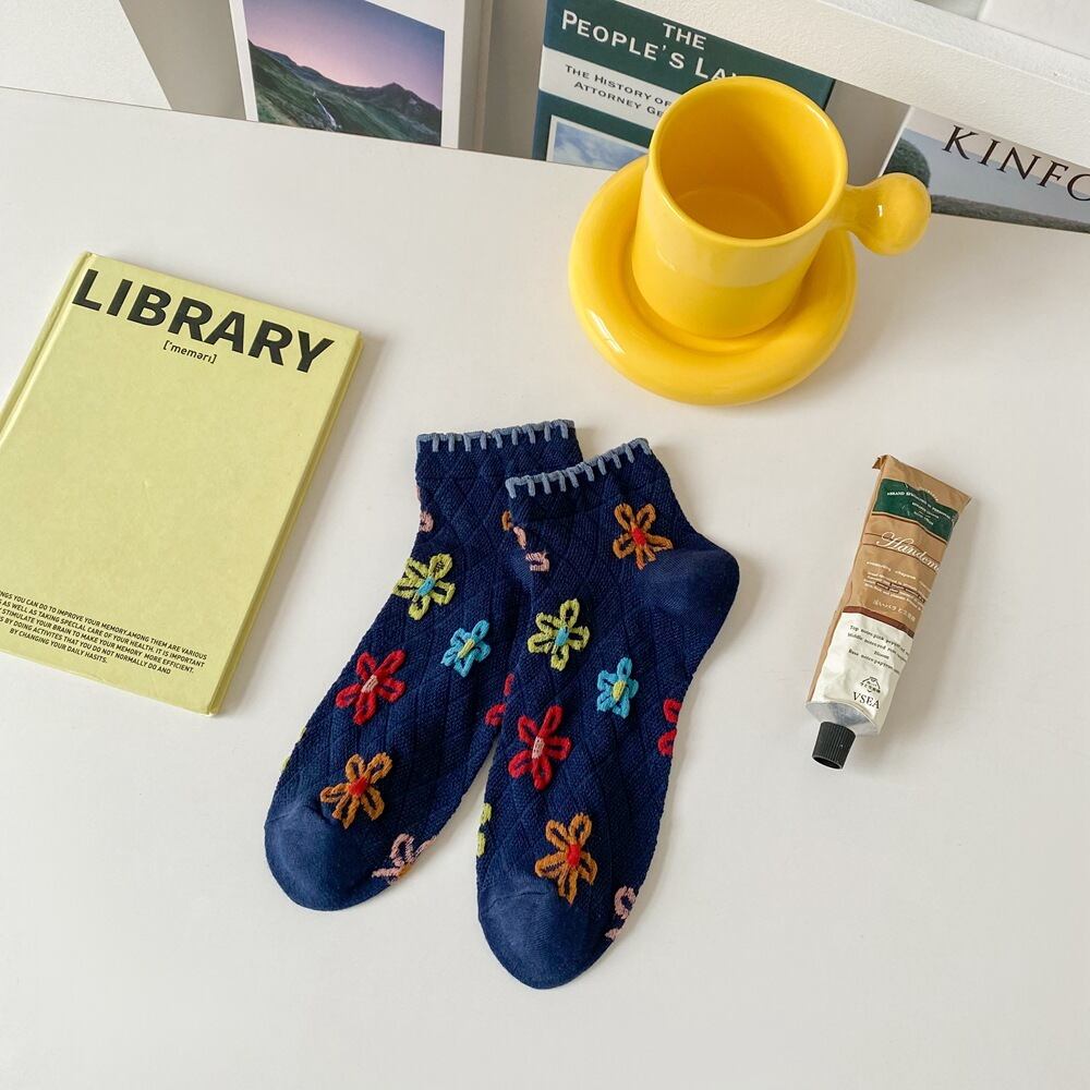 wz-949 靴下 花柄 可愛いデザインソックス 3点セット【2024春夏新作】